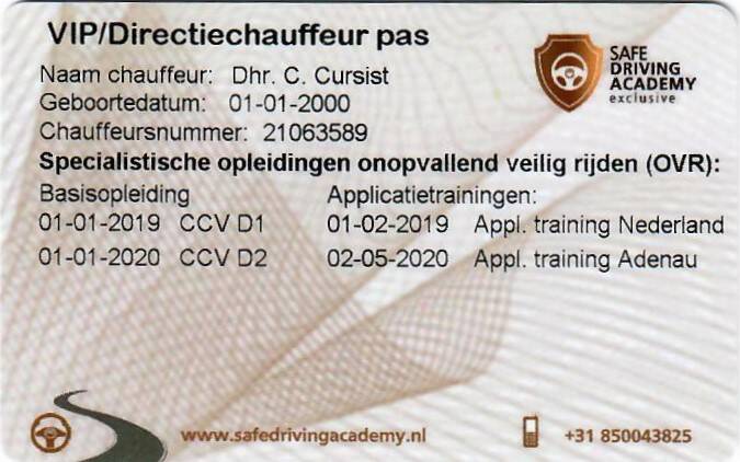 Voor de gecertificeerd directiechauffeur blijft dan onverminderd overeind dat hij met het CCV D1 en D2 certificaat zich absoluut kan onderscheiden in het zakelijk personenvervoer. Het besluit van het CBR/CCV geeft tevens de ruimte om de huidige eisen voor het examineren te herbeoordelen en daar waar dit bijdraagt aan een kwalitatieve ontwikkeling van het certificaat dit zal worden aangepast. Ook in dit traject zal Safe Driving Academy zijn aandeel blijven leveren.